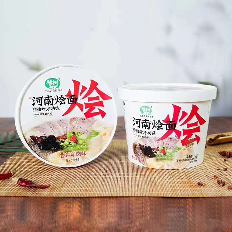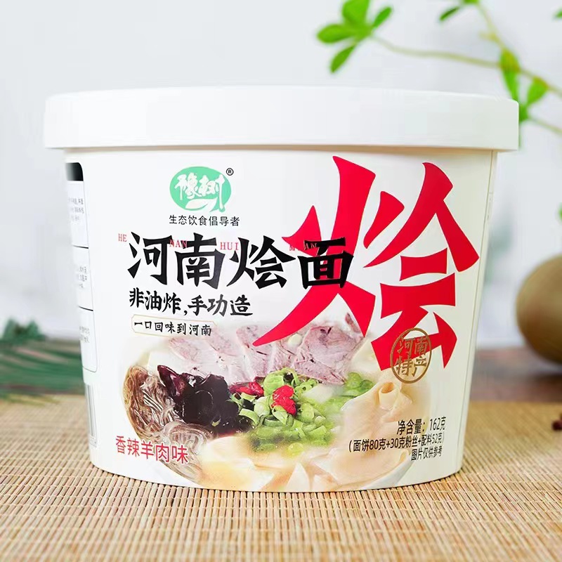 烩面是河南特色面食,豫树牌河南烩面是一款非油炸方便速食产品,免煮冲泡型,面饼甄选本地优质小麦粉,***,***防腐剂,***增白剂,非油炸经高温熟化工艺,口感爽滑筋道。搭配秘制酱料包,味道鲜美,汤好面筋,经济实惠,营养丰富,方便快捷。