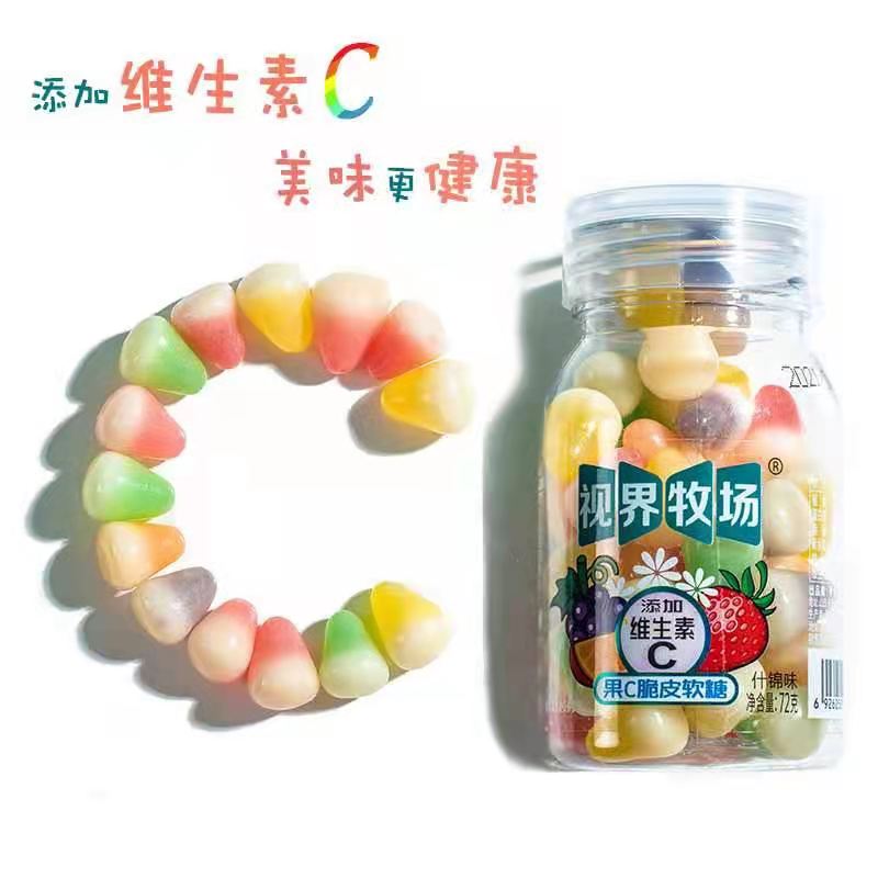 视界牧场果C脆皮软糖(规格:72克*8瓶*10盒)