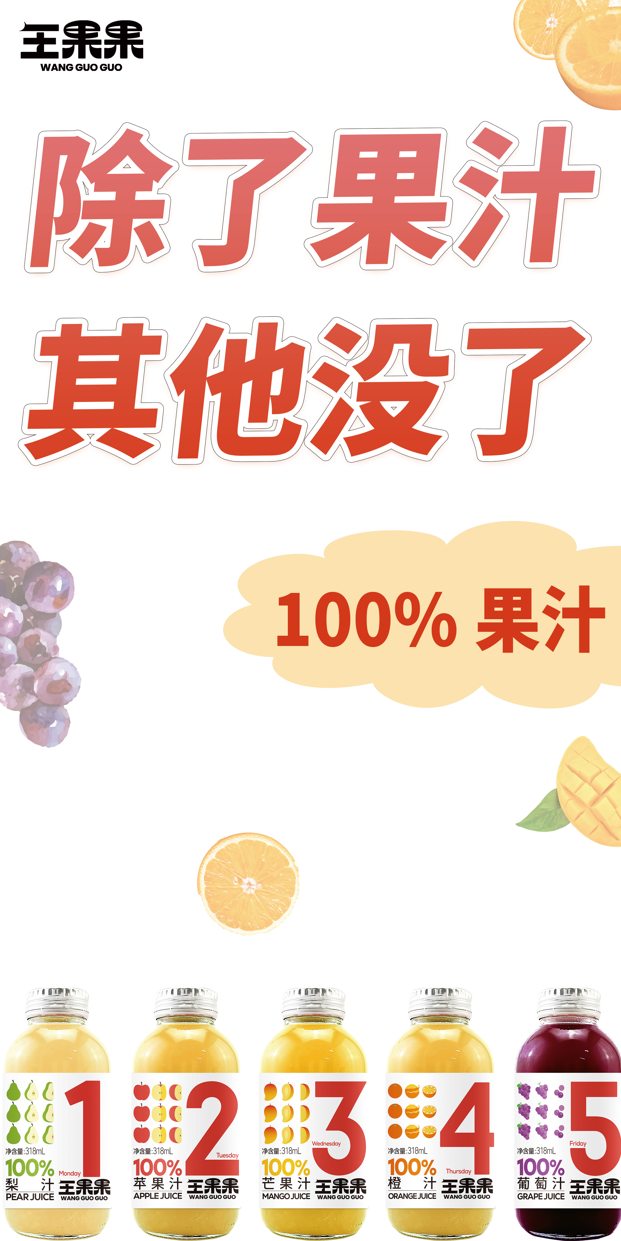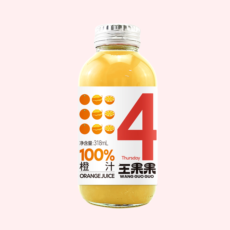 1.王果果百分百橙汁选用以色列进口橙汁,相比于其他地区的橙子以色列橙子果肉甜度更加,在剥皮之前就香气逼人,被称为维C**。
