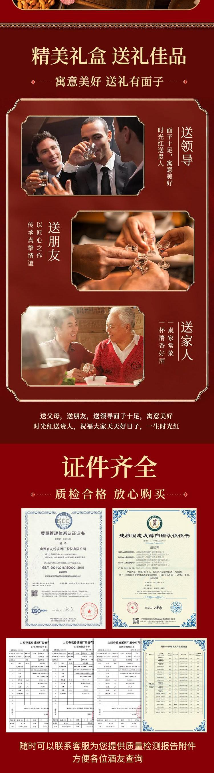 以“水、高粱、大麦、豌豆”作为原料酿造,质量等级为“优级”,妥妥的纯粮酒!