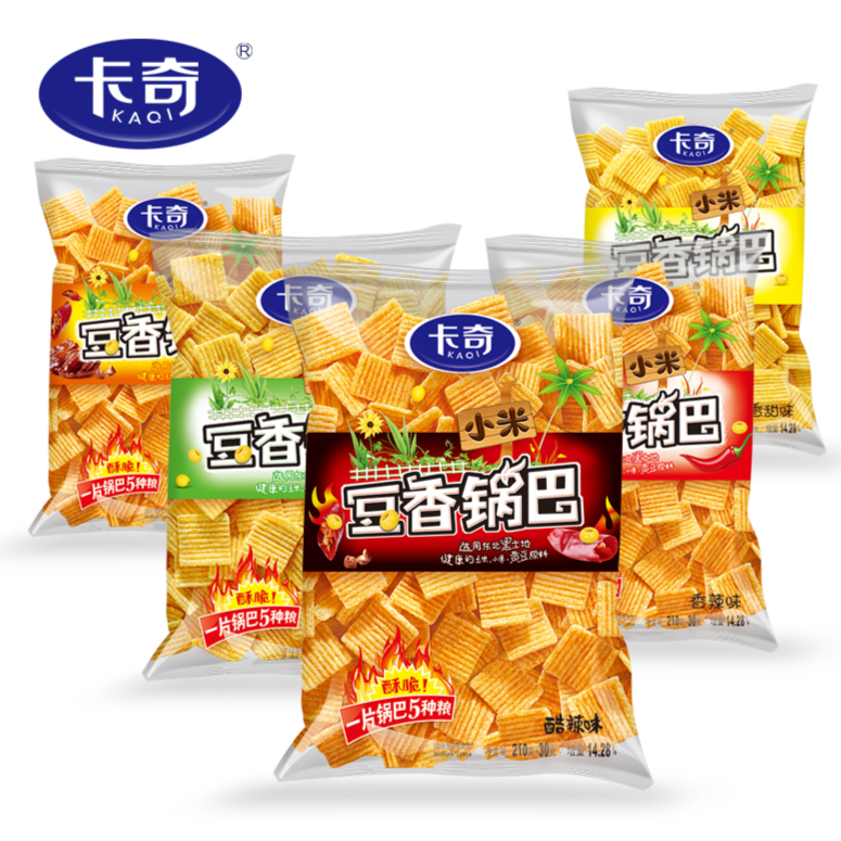 产品原料特点:以玉米、小米、黄豆、大米、小麦粉科学配比,保持了大米的香脆,玉米、小米的高纤维产品更酥、黄豆的回香,让产品整体口感更丰富