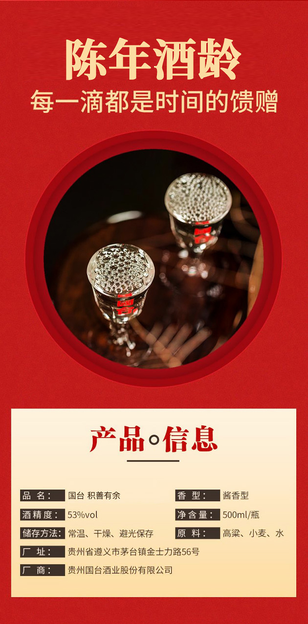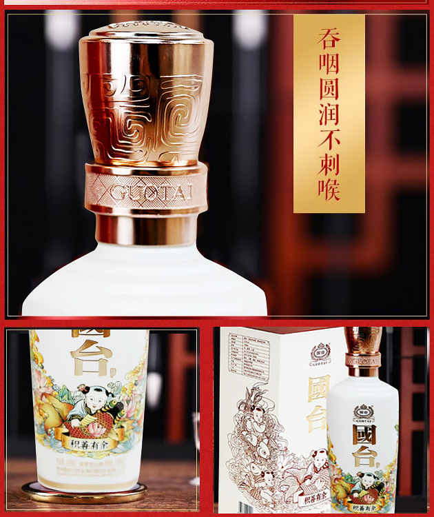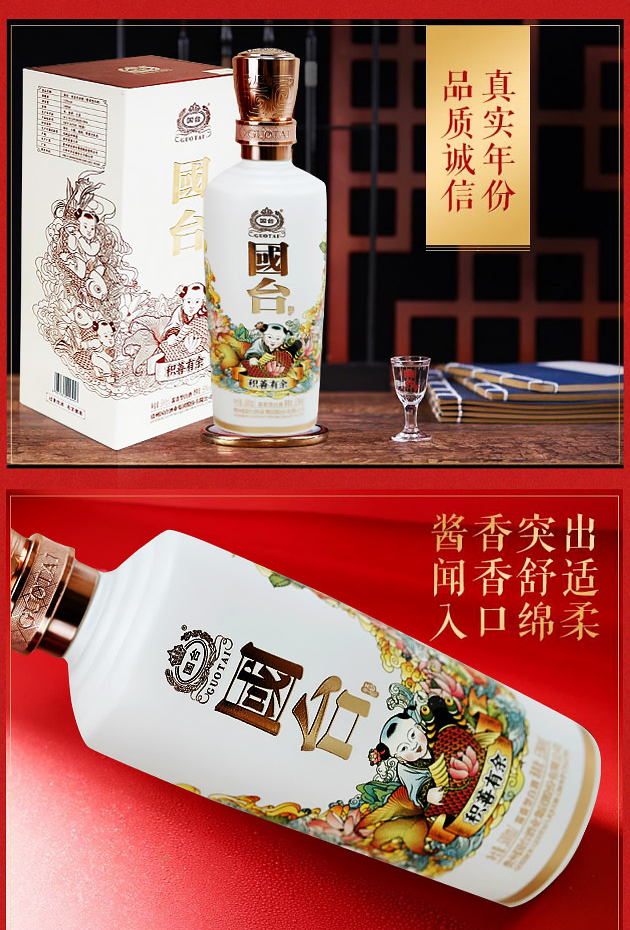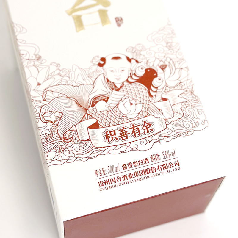 国台积善有余酒是贵州国台酒业融合非物质文化遗产“杨柳青木版年画”的艺术灵感匠心打造、精心设计,美意美器、匠心酱酒的完美结合,寄寓“积善之家,必有余庆”的美好祝福。