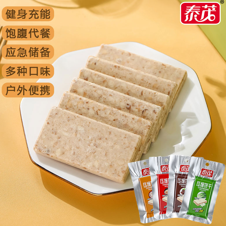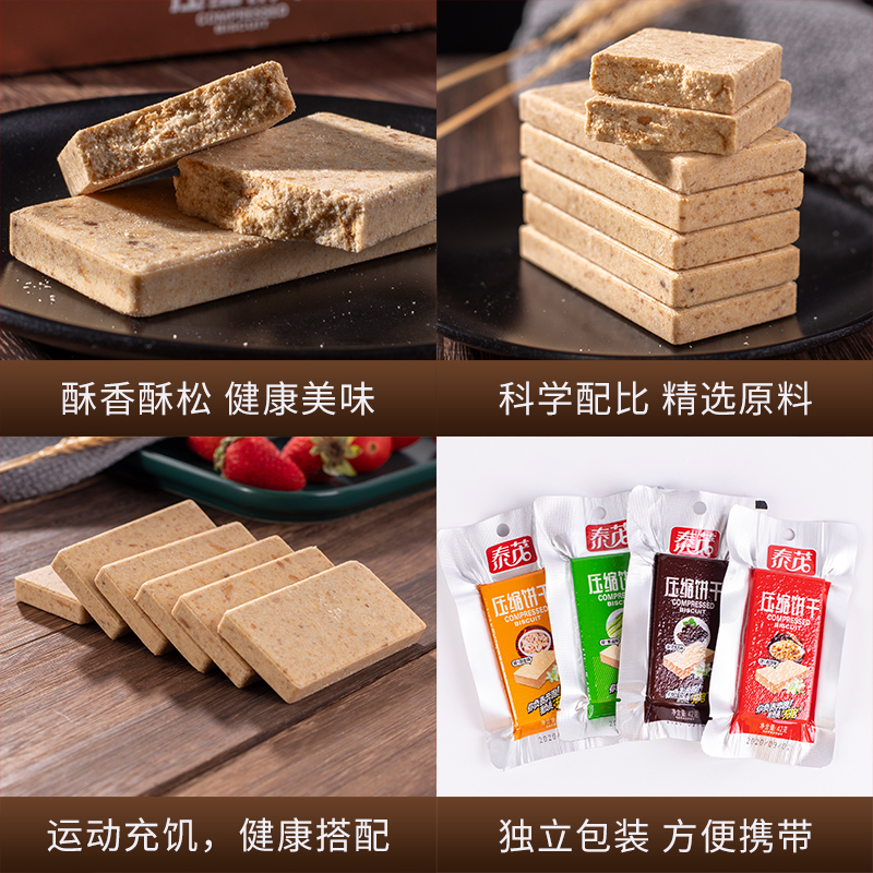 压缩饼干甄选品质原料——香醇植物油、优质小麦粉、全脂奶粉等,精心烘焙保留小麦原有醇香,用心做好这块充满“能量”的饼干!