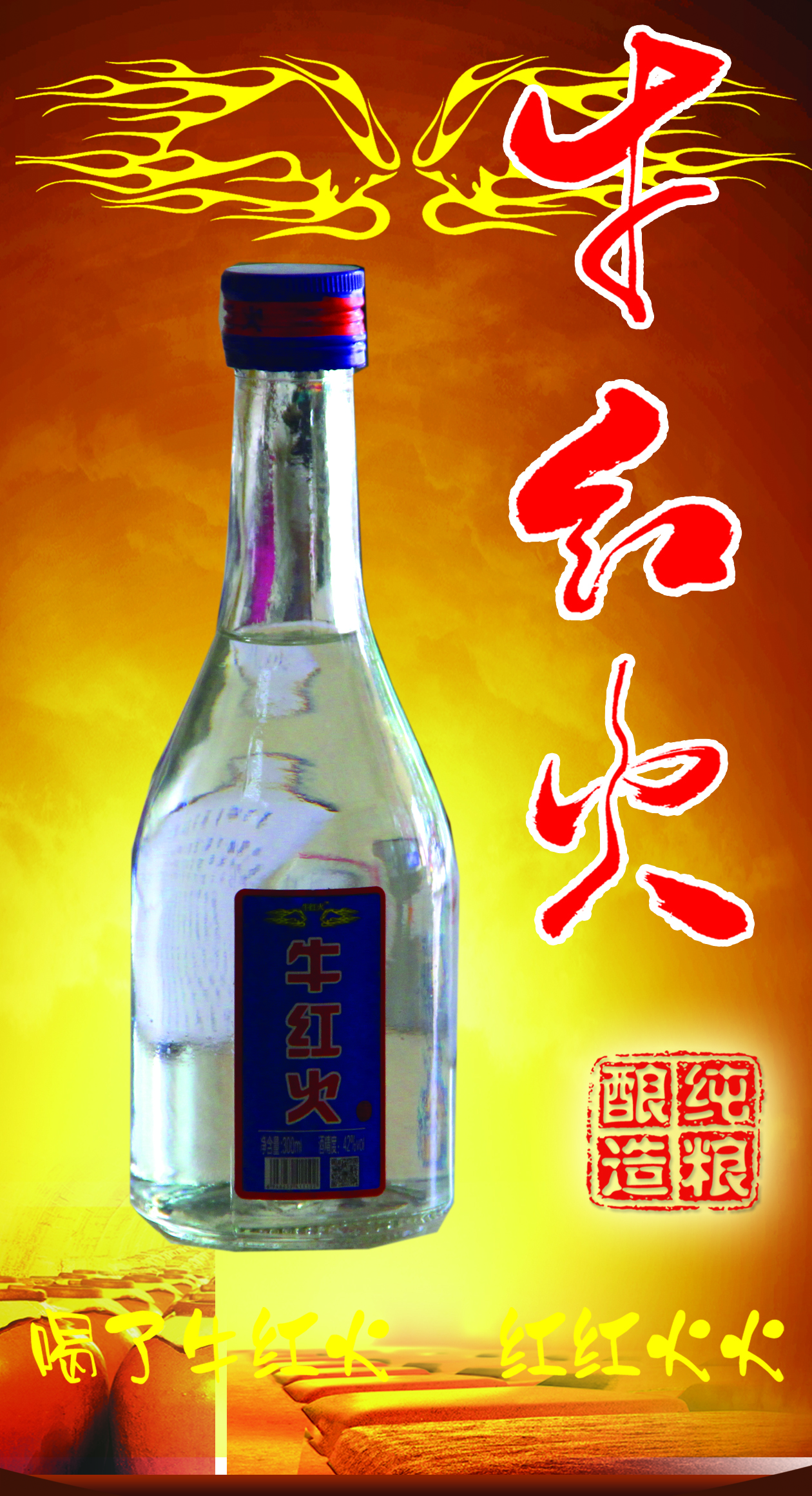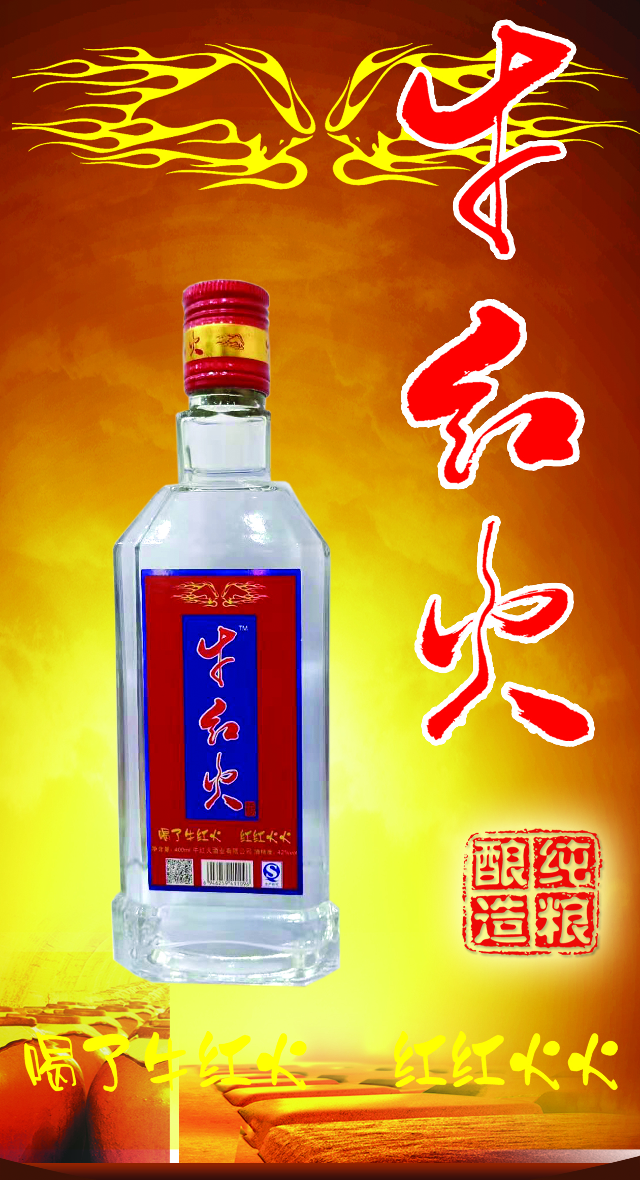当今国人追求“牛“,牛人牛事牛遍华夏神州;当今国家*红火,国事家事事事红红火火;所以,长江后浪推前浪,牛红火酒业”牛红火“应运而生。