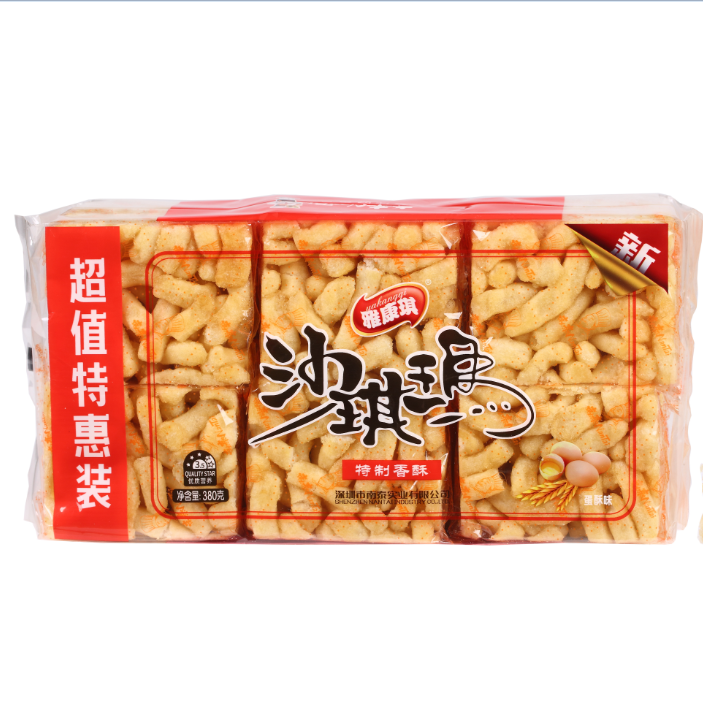 雅康琪380g沙琪玛有4个口味,分别是蛋酥/芝麻/提子/蔓越莓味。每件20包,每包12个独立小包装。选用优质食材鸡蛋,小麦粉,芝麻,提子干,蔓越莓,白砂糖等匠心烘焙,继承传统制作工艺,营养美味,酥软香甜。补充每日能量。