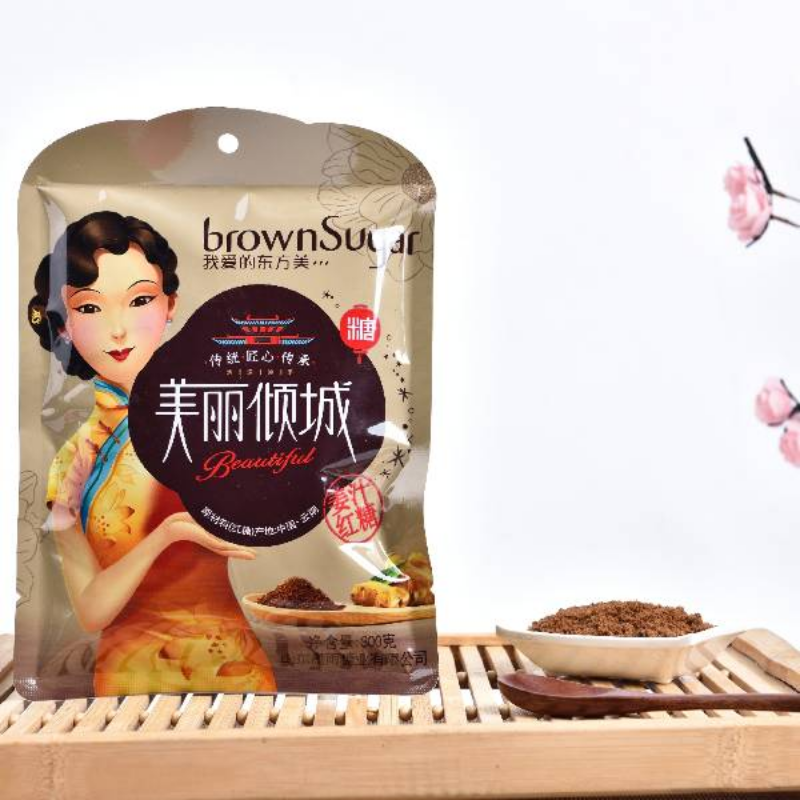 美丽倾城系列红糖采用异形包装,在众多品牌红糖中以形状差异化脱颖而出。