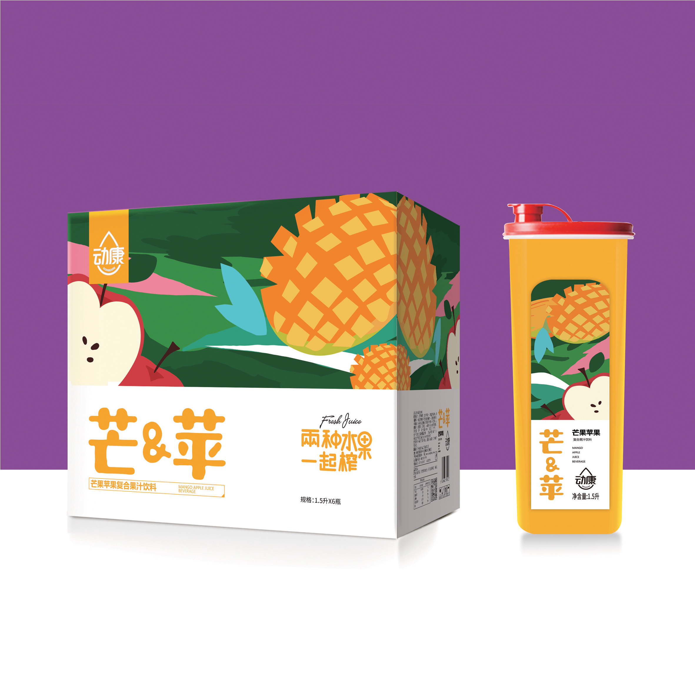 动康百香果橙子蓝莓黑枸杞芒果苹果网红爆款销量**大瓶两种水果一起榨餐饮乐扣瓶餐饮居家复合果汁饮料
