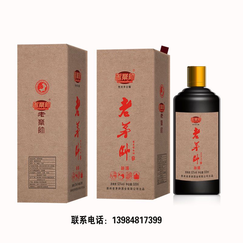 老茅帅酒传承贵州茅台镇酱香酿酒工艺,依赖奇特极端的地质、气候、生态,以本地糯高粱、小麦、赤水河水为原料,从端午踩曲、重阳投梁,历经九次蒸煮、八次加曲、七次取酒,长达一年的酿造周期,再经过陈年老熟和勾调大师精心勾调而出厂。老茅帅酒具有酱香突出、优雅细腻、酒体醇厚、回味悠久、空杯留香。