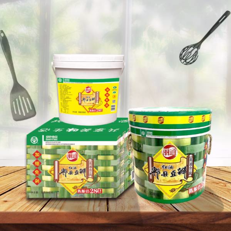 精选符合绿色食品标准要求的原料,采用郫县豆瓣工艺酿造,长达280天以的发酵和晒制。加入发酵、晒制达1年以上的老豆瓣,品质上乘、性价比高,豆瓣酱香味浓郁、上色效果好,内容物加细后免去再次剁制的麻烦。拥有瓶装、塑料桶装、纸箱装及纸桶装多种包装规格。