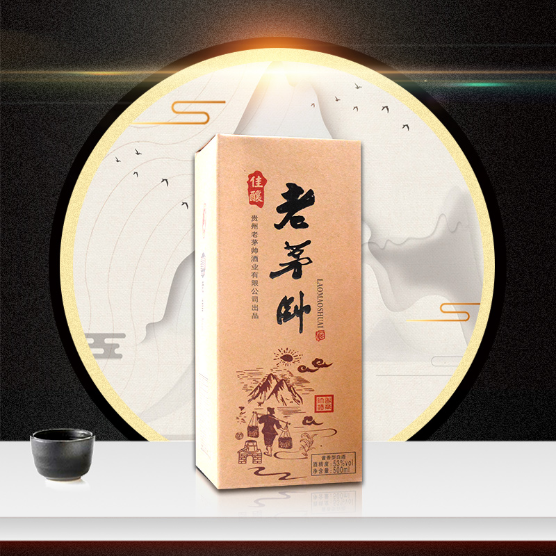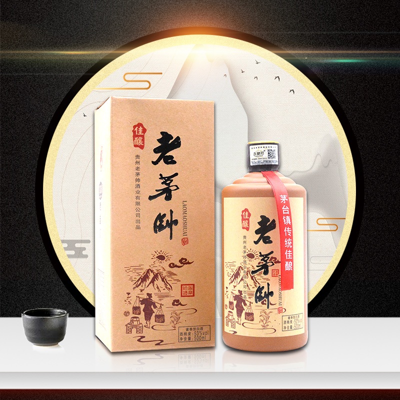 老茅帅酒传承贵州茅台镇酱香酿酒工艺,依赖奇特极端的地质、气候、生态,以本地糯高粱、小麦、赤水河水为原料,从端午踩曲、重阳投梁,历经九次蒸煮、八次加曲、七次取酒,长达一年的酿造周期,再经过陈年老熟和勾调大师精心勾调而出厂。老茅帅酒具有酱香突出、优雅细腻、酒体醇厚、回味悠久、空杯留香。