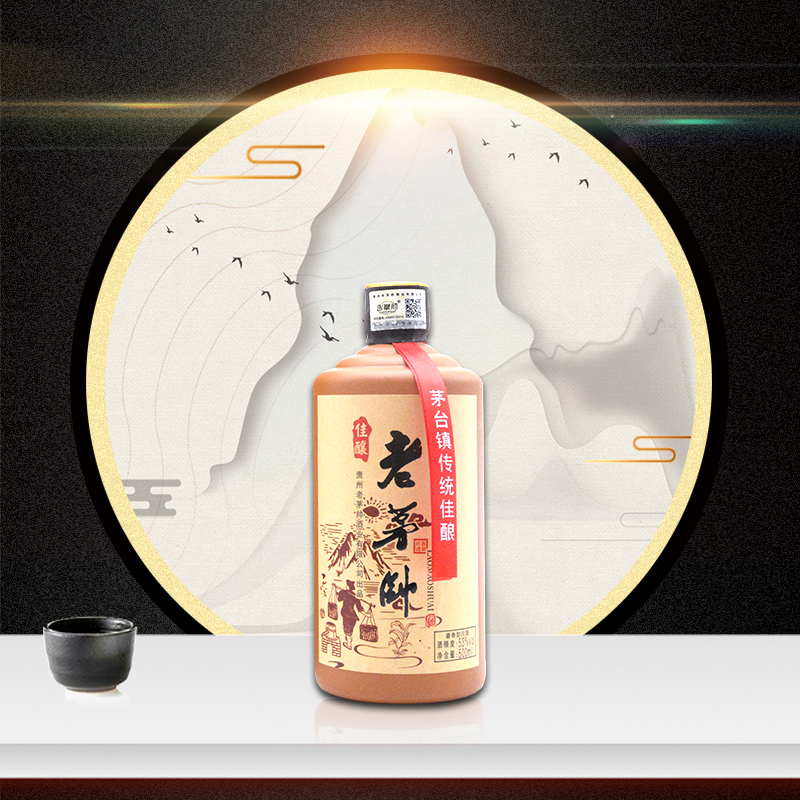 老茅帅酒传承贵州茅台镇酱香酿酒工艺,依赖奇特极端的地质、气候、生态,以本地糯高粱、小麦、赤水河水为原料,从端午踩曲、重阳投梁,历经九次蒸煮、八次加曲、七次取酒,长达一年的酿造周期,再经过陈年老熟和勾调大师精心勾调而出厂。老茅帅酒具有酱香突出、优雅细腻、酒体醇厚、回味悠久、空杯留香。