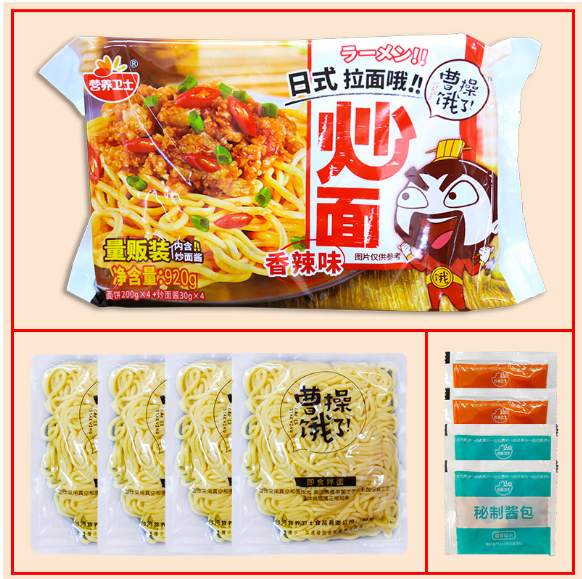 曹操饿了日式炒面可真正简琐做饭步骤,无需添加其他调料,一包炒面酱在手,厨房小白也可炒出美味健康炒面。炒面有炒拉面(原味、香辣)和炒乌冬面(原味、香辣)两款,多种选择总有一款适合您的口味。