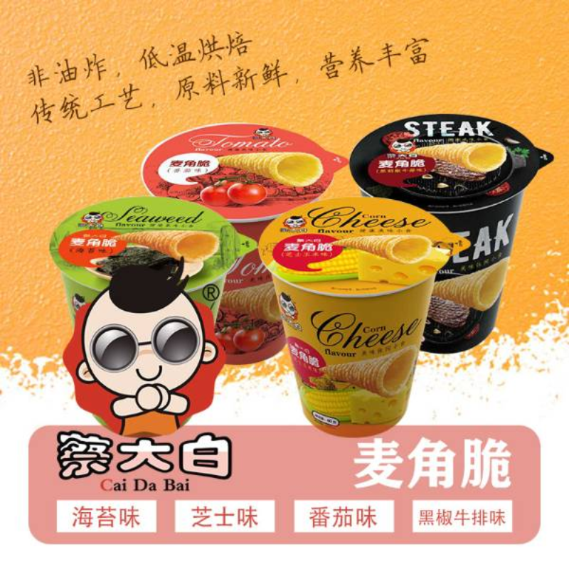麦角脆传统产品新口味,休闲零食新开端,油炸产品好吃易上口,杯装造型,携带方便,陈列美观。价格美丽,适合流通及商超渠道运作。箱规:1*24