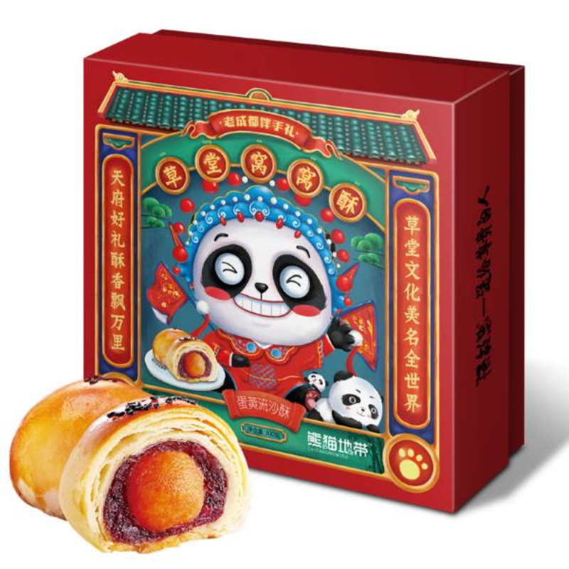 产品包装提取草堂特有的红墙为色彩来源,以“草堂红”作为包装底色,艺术化的画面再现草堂美景,川剧扮相的熊猫嫁接了国潮风格的表现,让整体画面生动活泼更显趣味,在表达成都代表的文化特色的同时,又将时尚富有风趣的设计与传统交融,展现富有内涵的文化艺术感。让产品快速从普通特产中脱颖而出。让消费者在品味成都特色美食的同时,更加深入而**地体味成都文创名城、旅游名城、美食之都、音乐之都的独特文化魅力。