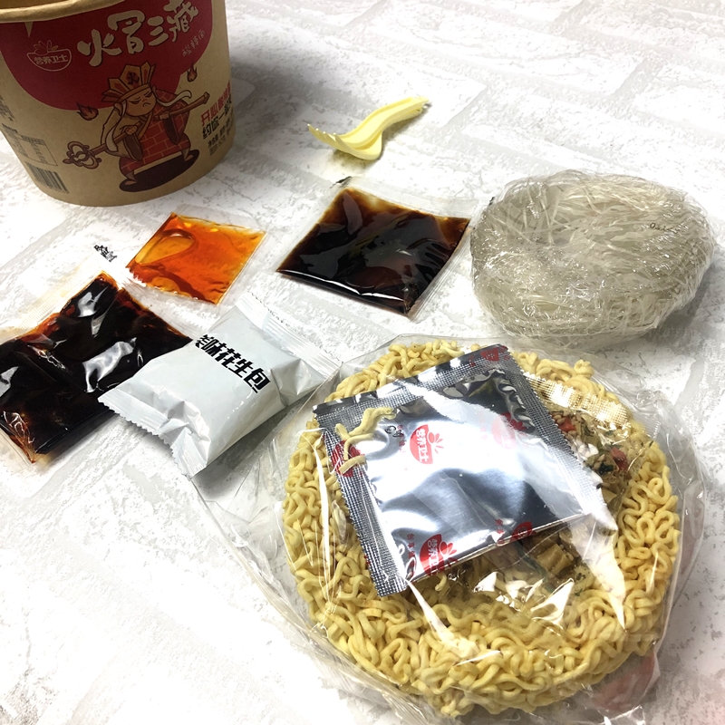 产品内容物:3包料,粉包、酱包、菜包、粉丝+面。