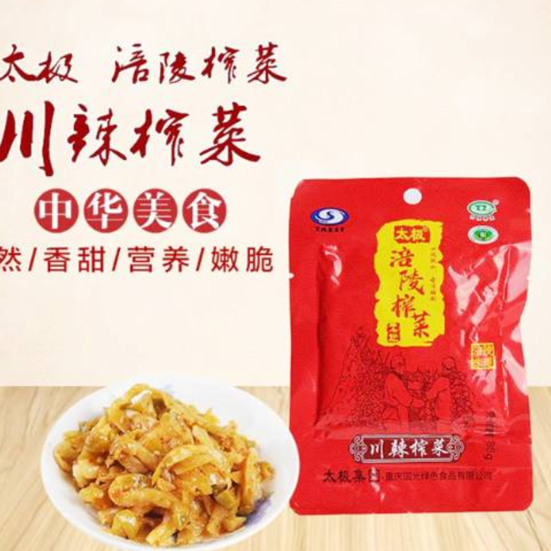 太极涪陵川辣榨菜,采用传统技艺与现代工艺完美融合,麻辣鲜香,此乃川味之经典,深受广大消费者喜爱和争相购买!
