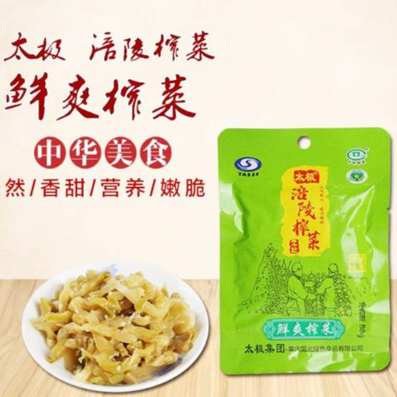 太极涪陵鲜爽榨菜,采用传统技艺与现代工艺完美融合,鲜爽可口、味美香甜、口味独特、深受广大消费者喜爱和争相购买!