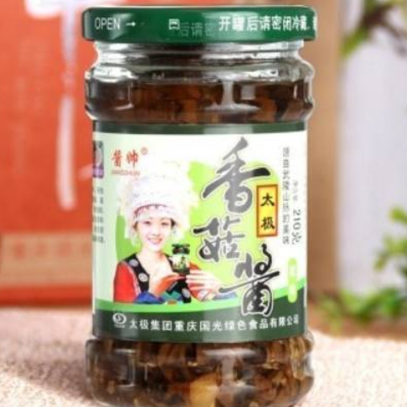 太极香菇酱,精选武陵山脉香菇,以“伞状部位”(香菇朵)为原料,姑体丰满,菇质密实,香气浓郁,味道鲜美,下饭、炒菜、炖鱼、配面等之佳品。