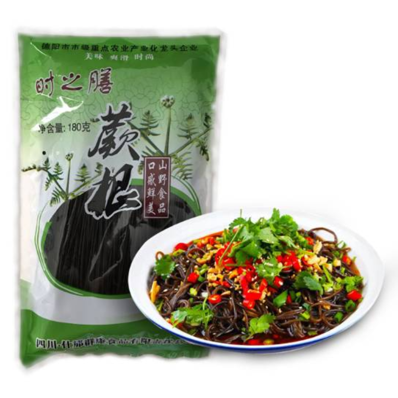 蕨菜营养丰富,富含多种矿物质,本产品采用长在深山野生蕨类植物,经现代工艺取其根部淀粉精制而成,保留了蕨根淀粉自然的深色和丰富营养元素,不论是凉拌,烫火锅,煮汤锅,山野味道,醇香美味,爽滑劲道,好吃不腻,是餐厅、饭店、家庭理想的餐饮佳品。