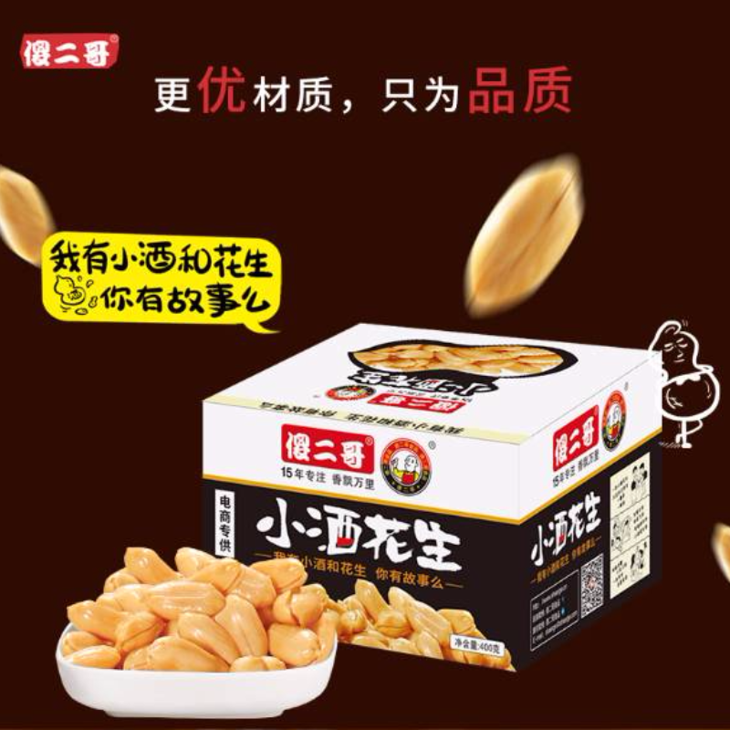 傻二哥旗下一系列产品供应,酒鬼花生、锅巴、多味花生、兰花豆、四川麻辣花生、重庆怪味胡豆,更多产品不断更新中......