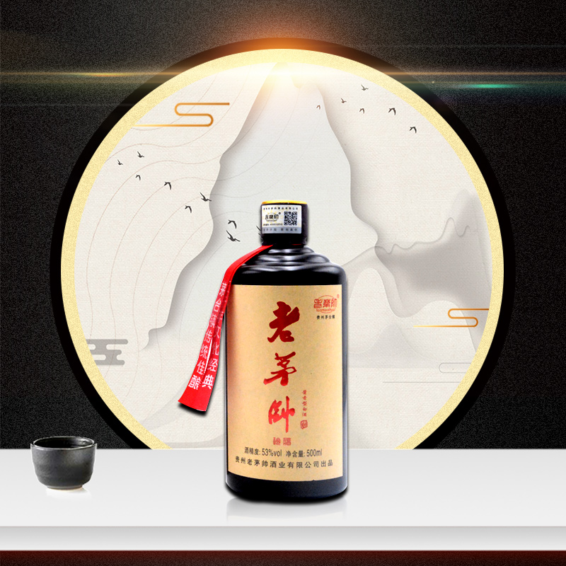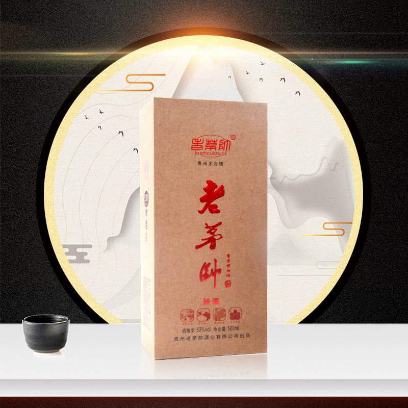 老茅帅酒传承贵州茅台镇酱香酿酒工艺,依赖奇特极端的地质、气候、生态,以本地糯高粱、小麦、赤水河水为原料,从端午踩曲、重阳投梁,历经九次蒸煮、八次加曲、七次取酒,长达一年的酿造周期,再经过陈年老熟和勾调大师精心勾调而出厂。老茅帅酒具有酱香突出、优雅细腻、酒体醇厚、回味悠久、空杯留香。