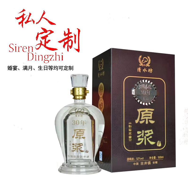 清水坊30年原浆是一款可私人定制的白酒,婚宴,生日等人生重大时刻均可定制。