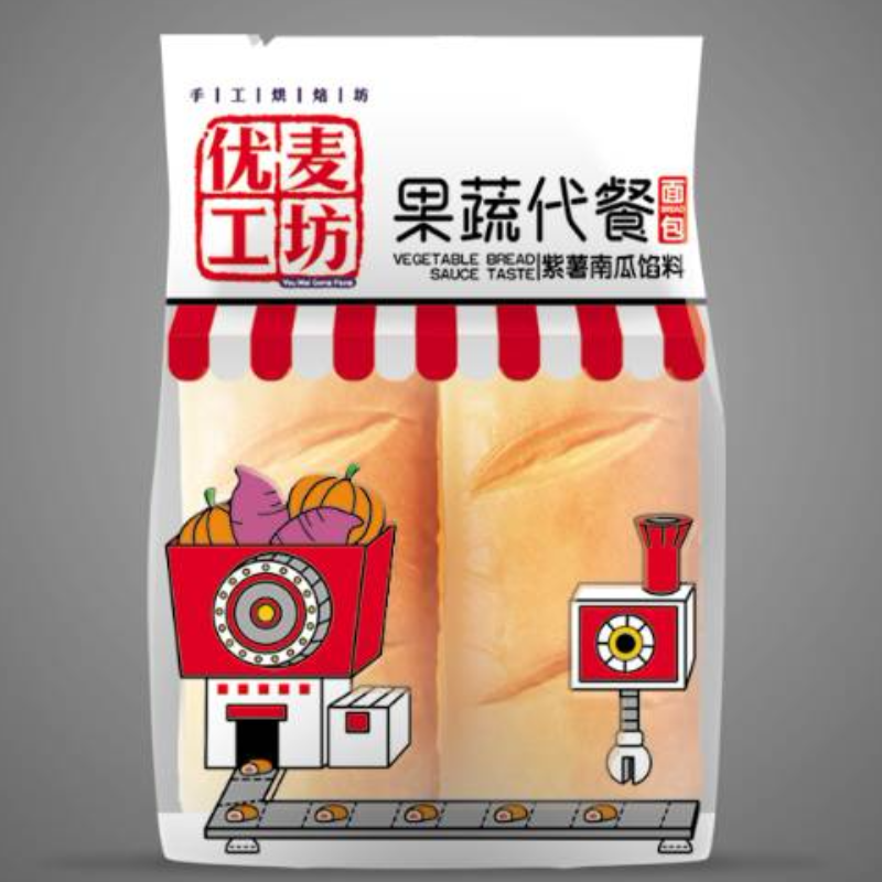 果蔬代餐面包:紫薯+南瓜面包,双重粗粮添加,双倍粗粮口感。