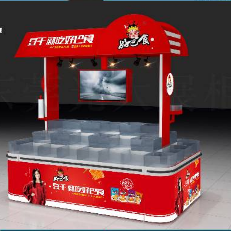 整体柜身铁木结合制作,顶部和支撑架为木质材质,两面开门,柜身画面用高精度写真广告画张贴。配套电视机,连卷袋,含灯箱及形象广告牌,拆装款式。