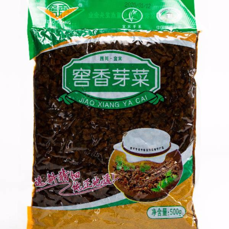 窖香芽菜奉承传统的工艺、以自身的质量、信誉求生存和发展,产品至始至终保持着自身的特色:窖香浓厚、纯真和地道。高端产品“坛装发酵、三腌两窖”是目前宜宾芽菜行业中的传统工艺,此“传统腌制技艺”以成功申请非物质文化遗产。