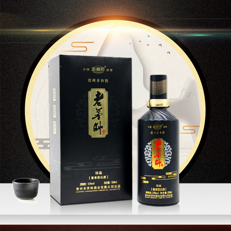 老茅帅酒传承贵州茅台镇酱香酿酒工艺,依赖奇特极端的地质、气候、生态,以本地糯高粱、小麦、赤水河水为原料,从端午踩曲、重阳投梁,历经九次蒸煮、八次加曲、七次取酒,长达一年的酿造周期,再经过陈年老熟和勾调大师精心勾调而出厂。老茅帅酒具有酱香突出、优雅细腻、酒体醇厚、回味悠久、空杯留香。
