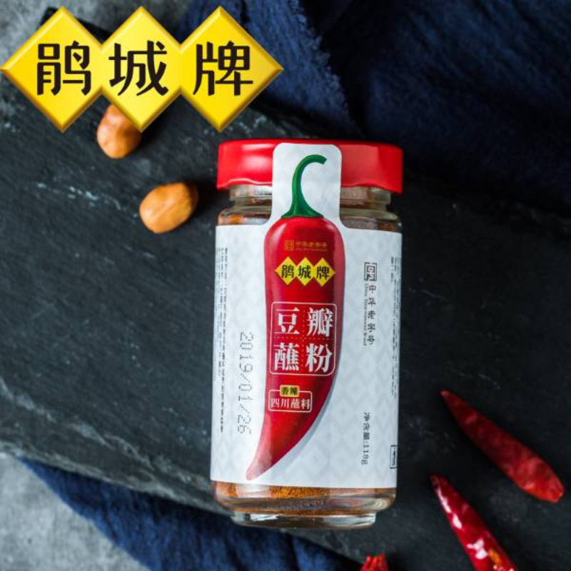 鹃城牌豆瓣蘸粉采用一级郫县豆瓣结合现代食品加工技术,将郫县豆瓣磨成粉,再配比辣椒、开发的即食新产品,酱香醇厚,辣而不燥。可用于烧烤、火锅、卤菜、串串、凉菜蘸食等。