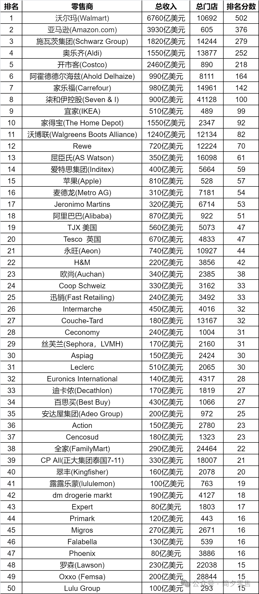▍2025年全球零售商50强公布
