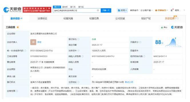 近日,宜宾五粮液科技创新有限公司成立,法定代表人为郑佳,注册资本1亿人民币,经营范围包括科技中介服务、发酵过程优化技术研发、工程和技术研究和试验发展、信息系统集成服务等,由五粮液股份公司全资持股。