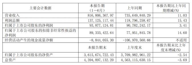 ▍会稽山上半年收入8.17亿,同比增11.03%