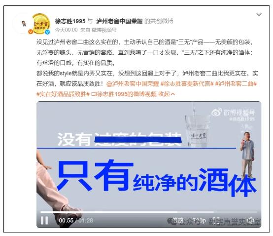 9月10日,泸州老窖微信公众号发文官宣中国内地脱口秀、影视男演员徐志胜为泸州老窖二曲品牌代言人,该产品建议零售价65元/瓶。