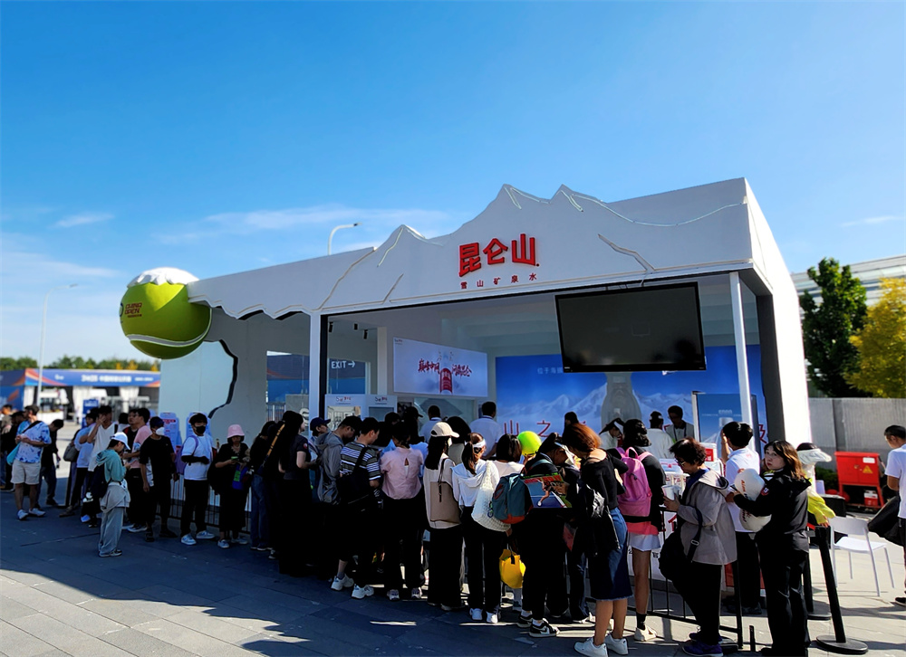 2025中网赛事期间,国家网球中心人流如织。昆仑山矿泉水品牌馆以其独特的雪山造型设计,成为现场最引人注目的观赛地标之一。