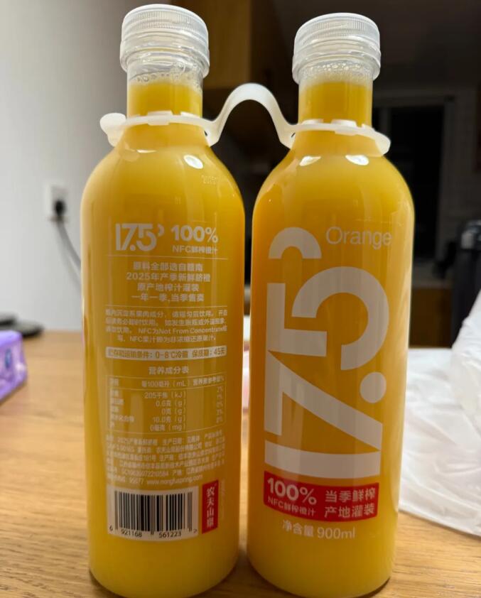 12月6日,农夫山泉17.5°鲜榨橙汁在山姆渠道限定回归。作为品牌每年柑橘季的固定动作,这款新品核心锚定鲜与限:原料选用当季成熟鲜橙,采用NFC非浓缩还原工艺直接压榨,产地灌装锁鲜,配料表仅含橙汁,无额外添加。