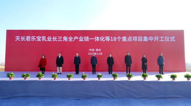 12月6日,君乐宝乳业长三角全产业链一体化等18个重点项目开工仪式在天长举行。滁州市委书记吴劲出席并宣布项目开工。滁州市委副书记、市长胡春华致辞,魏立华董事长出席仪式。该项目位于安徽省绿色食品产业重点承载区——滁州天长市食品小镇。项目以奶源基地与液态奶生产基地为核心,贯通奶牛养殖、乳制品生产加工等全产业链环节。