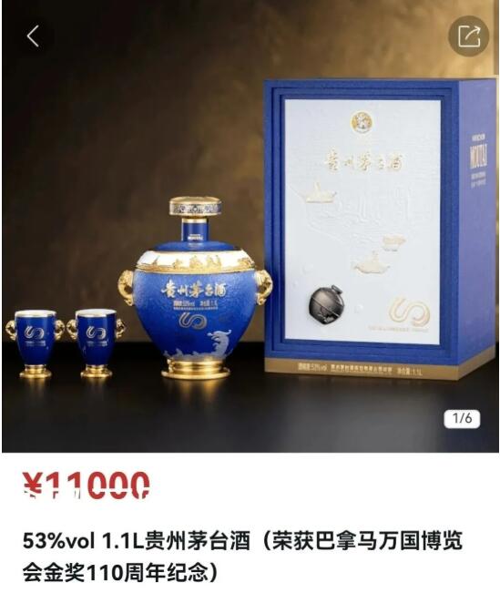 据了解,2025年,逢茅台酒荣获巴拿马万国博览会金奖110周年,贵州茅台特推出此款纪念产品,容量为1.1L装,定价11000元/瓶,酒瓶设计以1915年茅台酒荣获金奖时的土陶酒坛为原型。