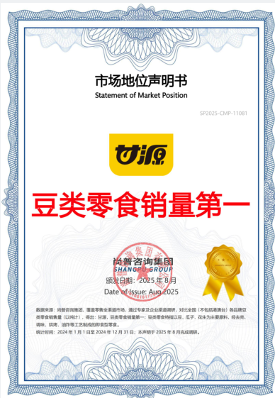 目前,甘源覆盖风味豆果、风味坚果、风味小吃、东方豆养等多品类产品组合。一年销售量达60亿包,风味豆果——青豌豆、蚕豆、瓜子仁深受消费者喜爱。十余年的深耕与沉淀,“甘源”已成为国内广受欢迎的休闲零食品牌。